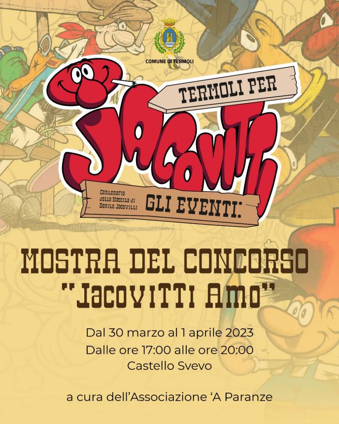 TERMOLI. Da domani, giovedì 30 marzo, e fino al prossimo primo aprile al Castello Svevo saranno esposti gli elaborati delle scuole elementari realizzati per la mostra concorso “Jacovitti Amo” organizzata dall’associazione “A’ Paranze”.