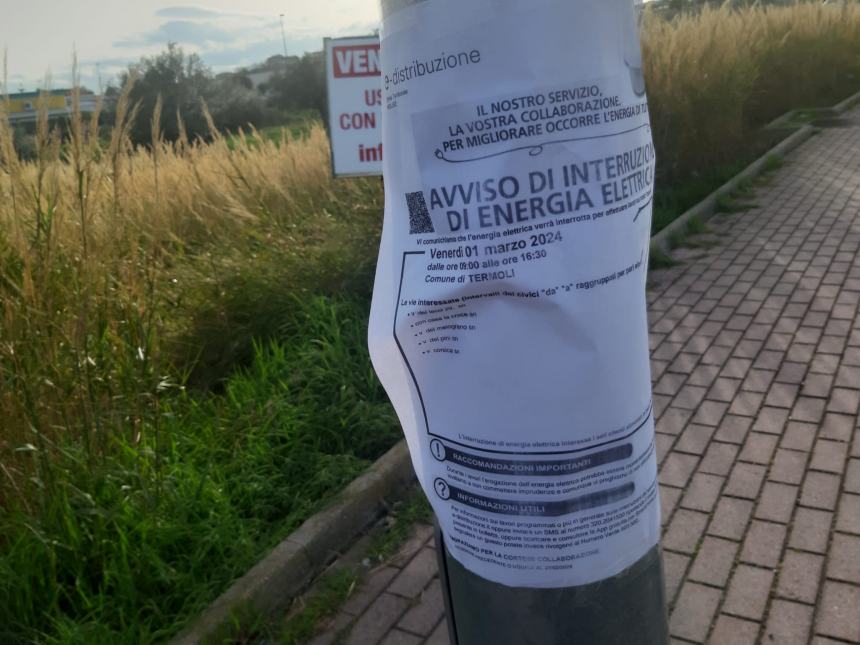 TERMOLI. Venerdì 1° marzo dalle ore 9 alle ore 16:30, l’Enel interromperà l’energia elettrica per effettuare dei lavori sugli impianti, nella zona di contrada Casa la Croce.