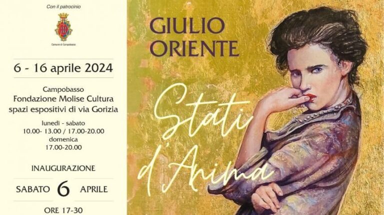 CAMPOBASSO. Sabato 6 aprile, alle ore 17:30, negli spazi espositivi di via Gorizia presso la Fondazione Molise Cultura a Campobasso, inaugura Stati d’Anima, mostra personale dell’artista Giulio Oriente. L’esposizione, curata da Silvia Valente e patrocinata dal Comune di Campobasso, rappresenta un’opportunità unica per immergersi nell’universo creativo di Oriente.