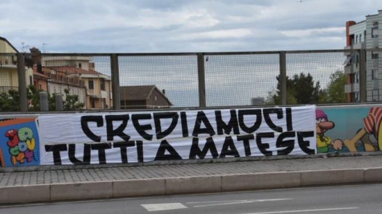 TERMOLI. Trasferta potenzialmente decisiva quella allo stadio “Pasqualino Ferrante” di Piedimonte Matese, contro la Fc Matese, per il Termoli 1920, che potrebbe conquistare la salvezza diretta. Si gioca domenica 21 aprile alle 15 e i tifosi giallorossi della curva Marco Guida spronano a dare sostegno alla squadra, con uno striscione affisso sul cavalcavia di via Abruzzi.