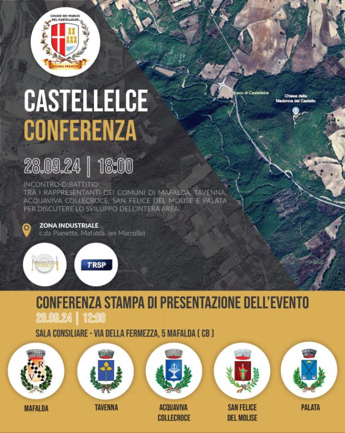 L’evento: “Castellelce in festa” si terrà nella zona industriale dell’ex stabilimento Marrollo, sito nel territorio ripaltino, dalle 18 di sabato 28 settembre. «Un primo germoglio per far crescere un albero importante», così il sindaco Egidio Riccioni, che ha lanciato la manifestazione nella zona Pip di Mafalda, presso l’ex stabilimento Smi. Una location non casuale, poiché si trova lungo la direttrice della strada Castellelce, che una volta completata oltre a collegare due delle principali strade molisane, Trignina e Bifernina, attraverserà i territori dei cinque paesi.