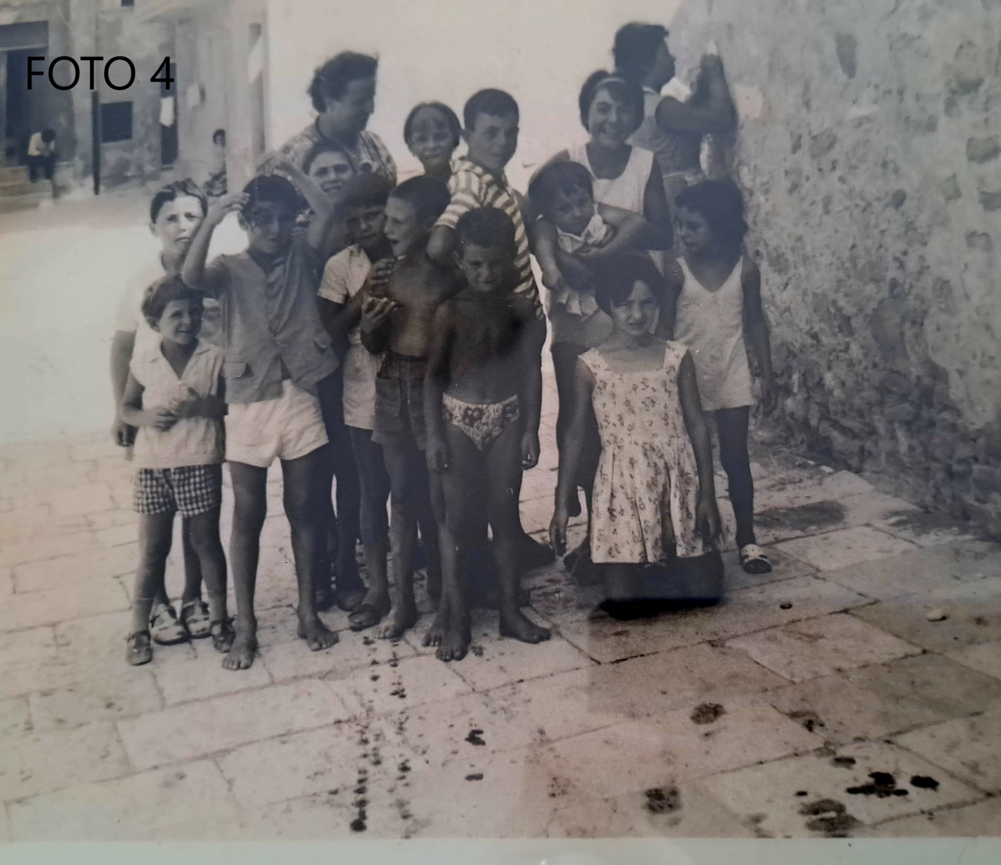 Infine, la quarta e ultima foto è un vero tuffo nel passato: uno scatto che due turisti inglesi vollero fare a un gruppo di scugnizzi del borgo, in tenuta estiva. Era agosto e alcuni di noi erano scalzi, in mutande o a petto nudo, con il costume da bagno. In questa foto ci sono anch’io: vediamo se riuscite a riconoscermi! Accanto a me si intravedono anche Padre Enzo Ronzitti, Nicolino Mucci (che purtroppo non c’è più) e altri di cui il tempo ha sbiadito i nomi. E come diciamo a Termoli: “Cu’ scherz e ca pazzie” (con lo scherzo e con il gioco), perché parliamo ormai di 66-67 anni fa. Ma rivedere queste immagini, questi luoghi e questi volti ci fa tornare giovani per sempre.