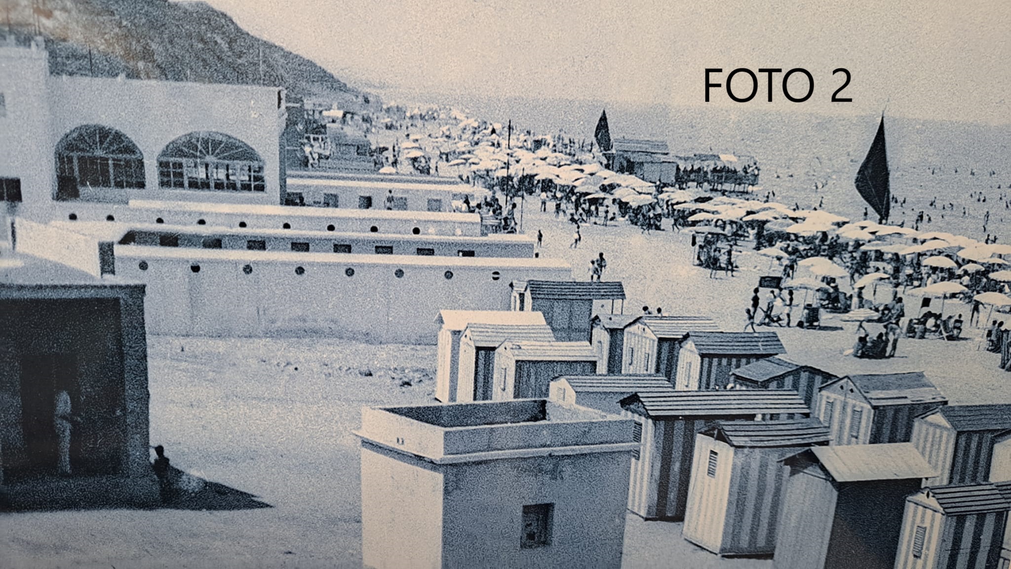 La seconda foto ritrae uno scorcio della spiaggia dalla parte del Lido Panfilo, con i vecchi casotti che fungevano da spogliatoi per chi doveva cambiarsi prima e dopo il bagno. Al Panfilo, in quell’epoca, si ballava e ci si divertiva molto, in un’atmosfera spensierata e autentica.