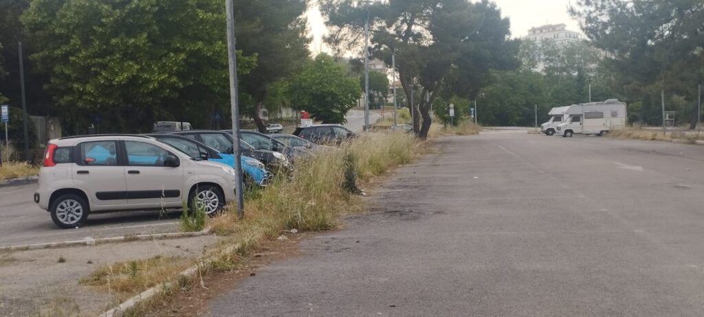 Al parcheggio, posto all’inizio di Rio Vivo, l’erba in alcuni punti supera il metro di altezza e arriva a lambire il cofano di alcune autovetture in sosta. Nelle vicinanze sono presenti massicci depositi di vegetazione, arbusti e altri residui di sfalcio erba già in avanzato stato di decomposizione (probabilmente si tratta solo di un deposito temporaneo). Questo potrebbe rappresentare un rischio per gli incendi oltre ad essere un evidente stato di degrado in un’area di accesso alla spiaggia. Le scale e i varchi che consentono l’accesso al mare in alcuni casi sono impraticabili.