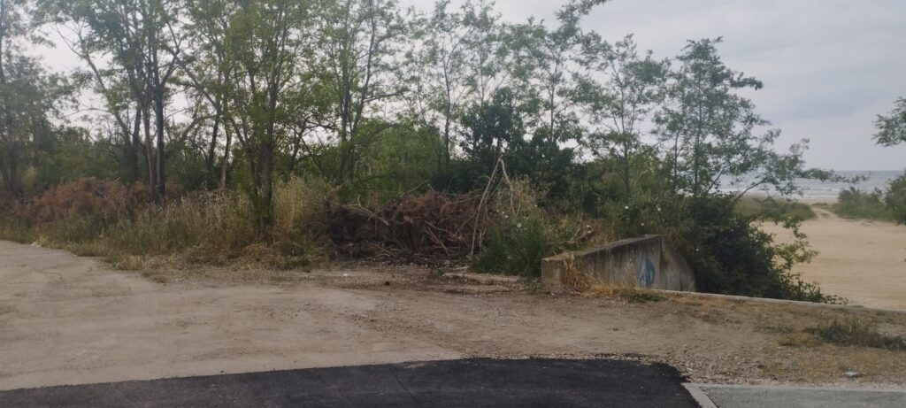 Nelle immediate vicinanze, a ridosso della spiaggia, la presenza di sanitari dismessi e abbandonati, del tipo vaso in ceramica (nei pressi della rotatoria area adibita anche a parcheggio auto), identifica con tale presenza di rifiuti abbandonati quanto degrado è presente in questa zona della nostra città balneare.