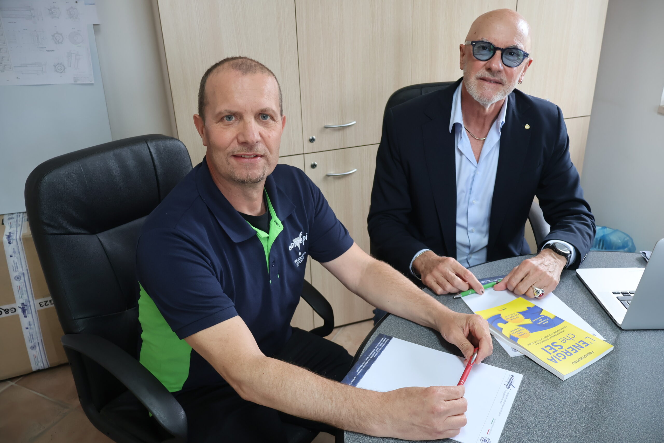 L’abbiamo incontrato nella sede della Emmepi srl, in via delle Acacie, dove era impegnato in una sessione formativa, su invito dei fratelli Rino e Sergio Muccino, titolari dell’impresa che si occupa di meccanica di precisione.
