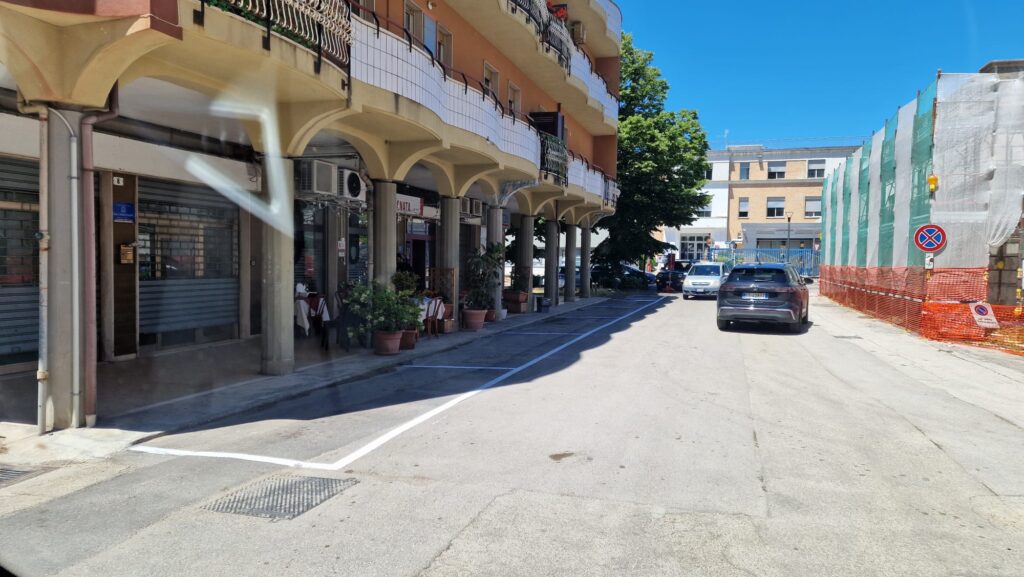 Già nei giorni scorsi un segnale verticale aveva anticipato l’imminente cambiamento, indicando le modifiche alla disciplina della sosta. Oggi le strisce sono state tracciate: bianche, ben visibili, delimitano chiaramente i nuovi stalli, riducendo al minimo la possibilità di sosta abusiva.