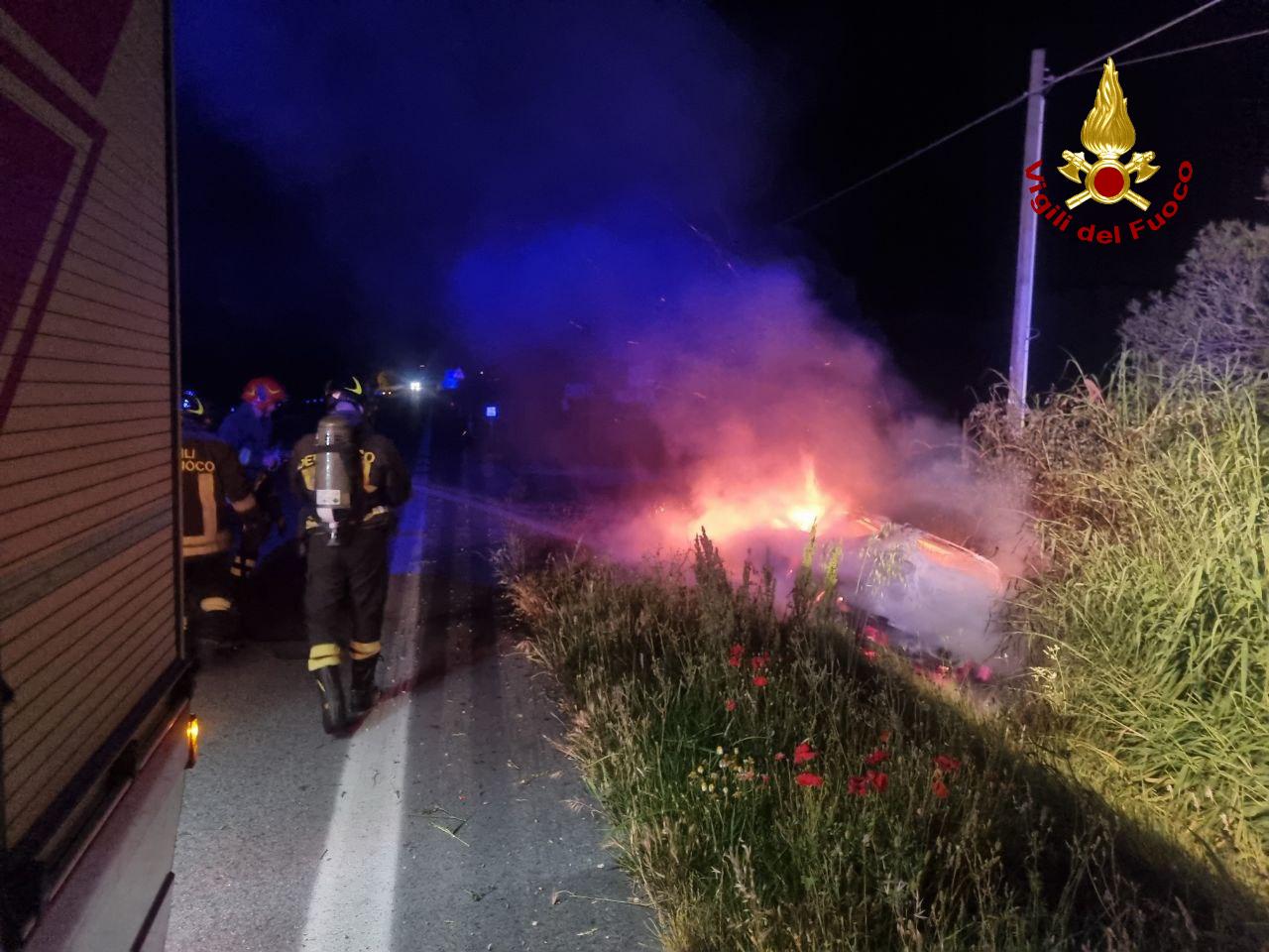MONTENERO DI BISACCIA. Tragico incidente stradale avvenuto nella notte sulla statale 16 in territorio di Montenero di Bisaccia. Un 26enne alla guida di una utilitaria è uscito fuori strada e la vettura si è schiantata contro un manufatto in cemento, prendendo fuoco. Purtroppo, per il giovane, residente a Termoli, non c’è stato nulla da fare.