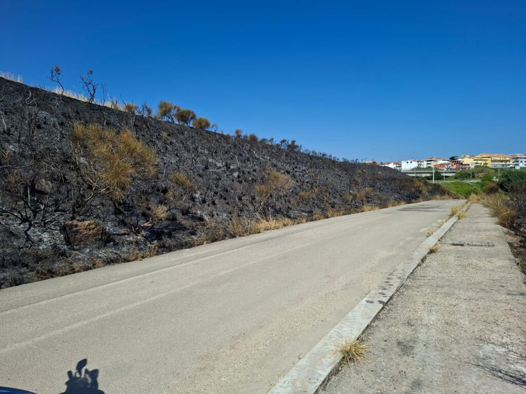 Accanto alle recinzioni del cantiere, fumarole ancora attive, che invitiamo a estinguere, intanto è andato bruciato un bel pezzo di territorio verde cittadino.