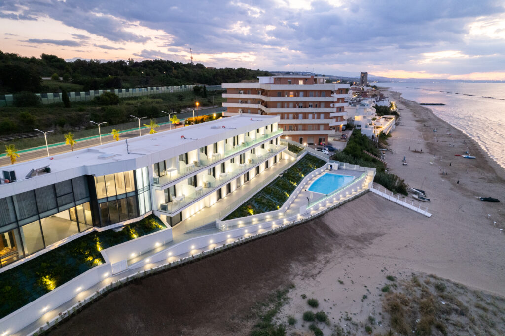 Il Diamante Resort non è semplicemente un albergo di lusso, ma un luogo dove l’ospitalità diventa arte. La visione di Lusiana Camaioni e Nicola Del Peschio si è concretizzata in un progetto che unisce comfort, raffinatezza e un legame autentico con il territorio. Situato in una posizione privilegiata, il resort offre panorami mozzafiato sul mare, scenari unici che accompagnano ogni momento della giornata, dalle prime luci dell’alba fino alle notti stellate.