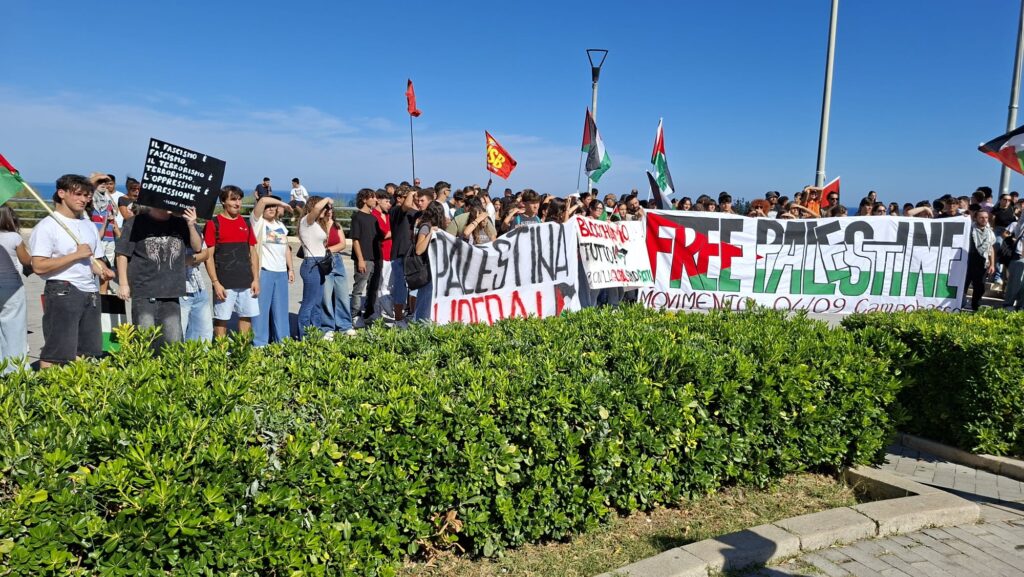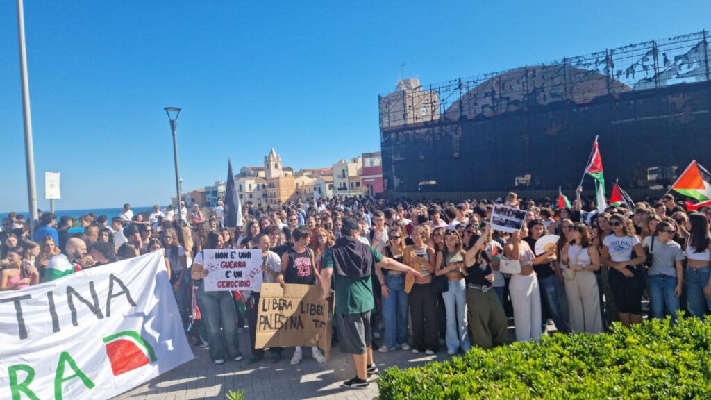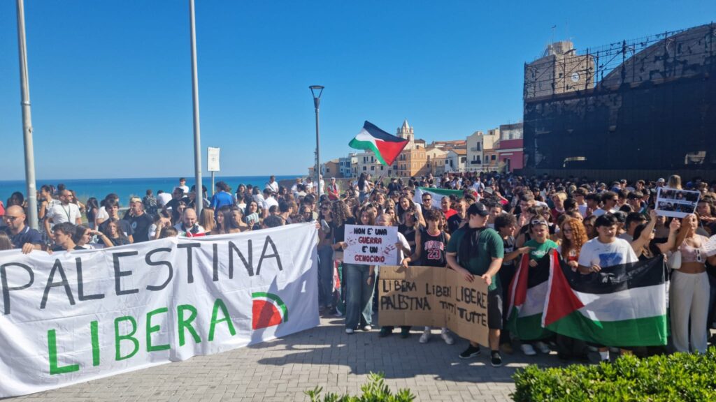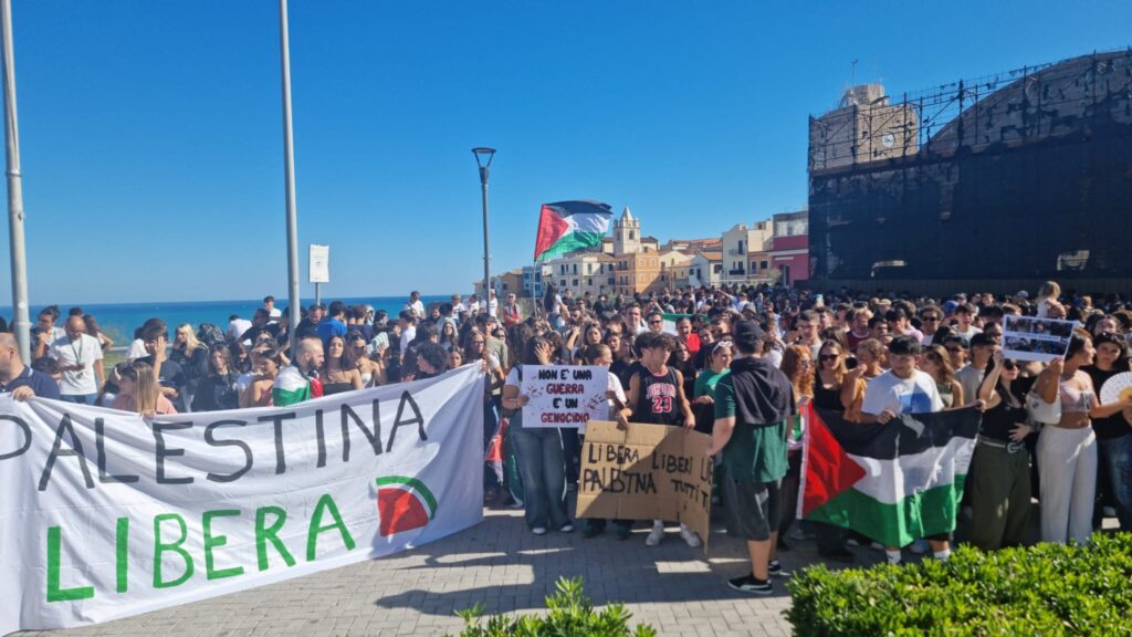 TERMOLI. Il sole di questa mattina illumina una piazza gremita di giovani. Gli studenti e le studentesse delle scuole di Termoli e del basso Molise sono scesi in piazza per far sentire la loro voce. Con il megafono al centro della folla, prendono parola uno dopo l’altro, denunciando il genocidio in corso in Palestina e raccontando la sofferenza dei civili innocenti.