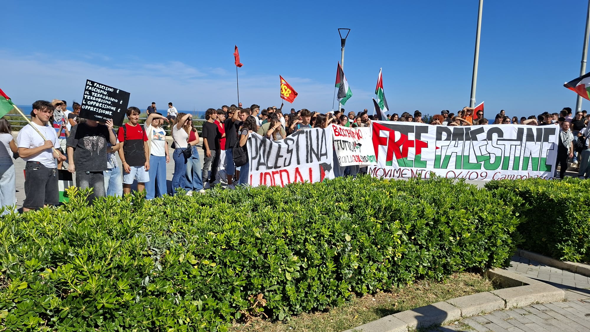 TERMOLI. Il sole di questa mattina illumina una piazza gremita di giovani. Gli studenti e le studentesse delle scuole di Termoli e del basso Molise sono scesi in piazza per far sentire la loro voce. Con il megafono al centro della folla, prendono parola uno dopo l’altro, denunciando il genocidio in corso in Palestina e raccontando la sofferenza dei civili innocenti.