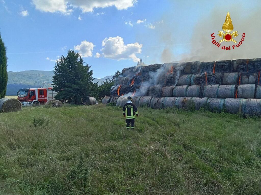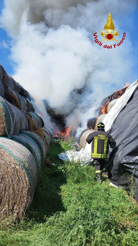 In fiamme 600 rotoballe, intervento massiccio dei Vigili del Fuoco