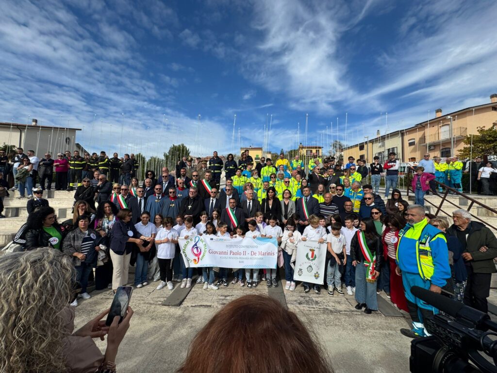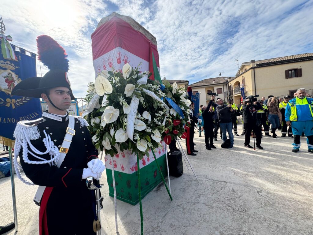 SAN GIULIANO DI PUGLIA. Ventitré anni dopo il crollo della scuola “Jovine”, San Giuliano di Puglia si stringe di nuovo attorno a un dolore che non passa. Alle 11:32, l’ora esatta in cui la tragedia ha spezzato 27 vite di bambini e la loro maestra, il paese si ferma. Le campane suonano a lutto, il vento muove le foglie, e tra il silenzio si sente solo il fruscio dei passi e qualche singhiozzo soffocato.