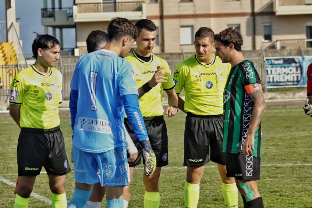 Nella ripresa, al 1’, Cancello ha subito una chance clamorosa ma sbaglia il controllo a tu per tu con Zanin. Il Chieti cresce e tra il 57’ e il 60’ batte cinque corner consecutivi, tutti pericolosi, culminati al 51’ con una sassata di Ceccarelli che si stampa sull’incrocio dei pali. Il Termoli reagisce con una rovesciata alta di Cancello al 67’ e un tiro impreciso di Romano al 70’. Al 73’, su punizione dalla destra, la difesa giallorossa si fa sorprendere e l’albanese Vuthaj insacca da opportunista per lo 0-1. I cambi di mister D’Adderio portano nuova energia e all’85’ arriva il meritato pareggio: Cancello, dopo tante occasioni sprecate, trova finalmente la rete con un tiro potente che buca le mani di Zanin. Nel finale, il Termoli spinge ma non trova il guizzo decisivo. Dopo sei minuti di recupero, l’arbitro fischia la fine: 1-1 il risultato, con i giallorossi che salgono a quota 10 punti, a una sola lunghezza dal Chieti. Il pareggio non basta per il sorpasso, ma conferma la crescita del Termoli, capace di tenere testa a una squadra esperta e di regalare al pubblico del “Cannarsa” una prestazione di cuore e intensità.
