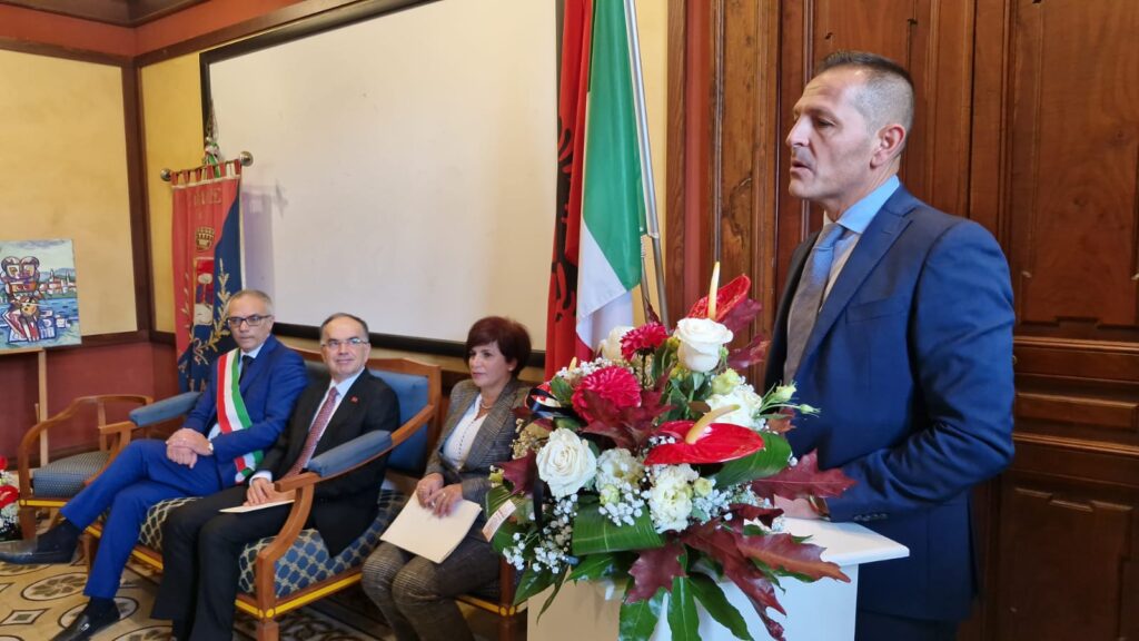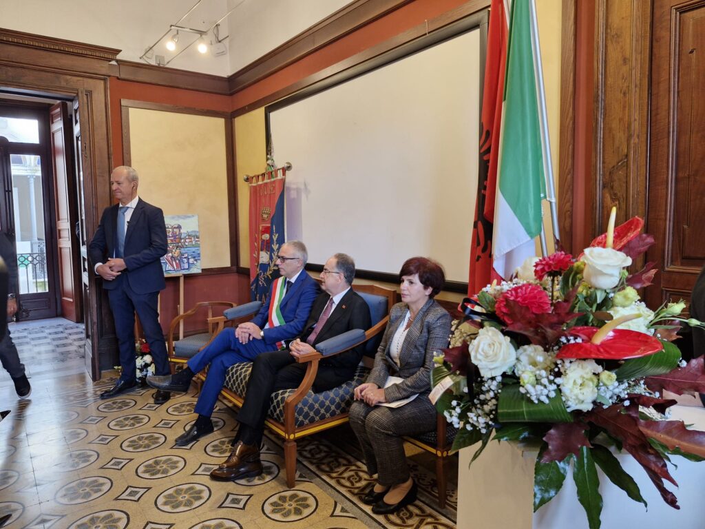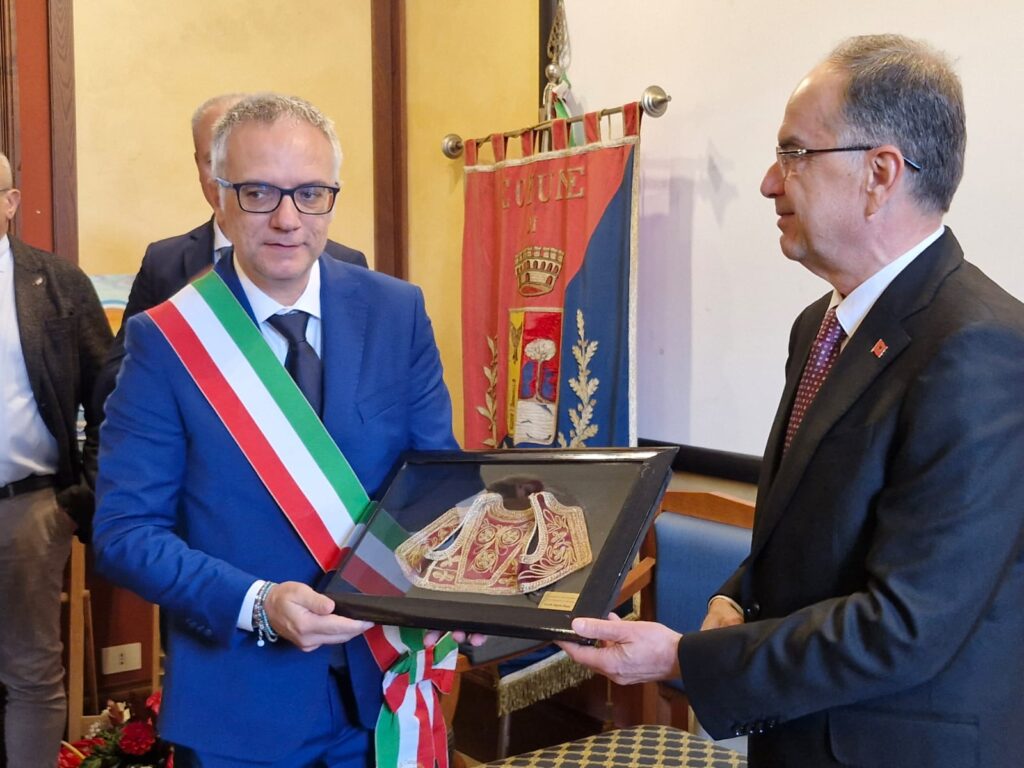 Dopo i saluti ufficiali, si è svolto lo scambio dei doni istituzionali tra il Presidente della Repubblica d’Albania e il Sindaco Vincenzo Norante, momento particolarmente significativo che ha suggellato l’amicizia e la continuità del legame storico tra i due popoli.