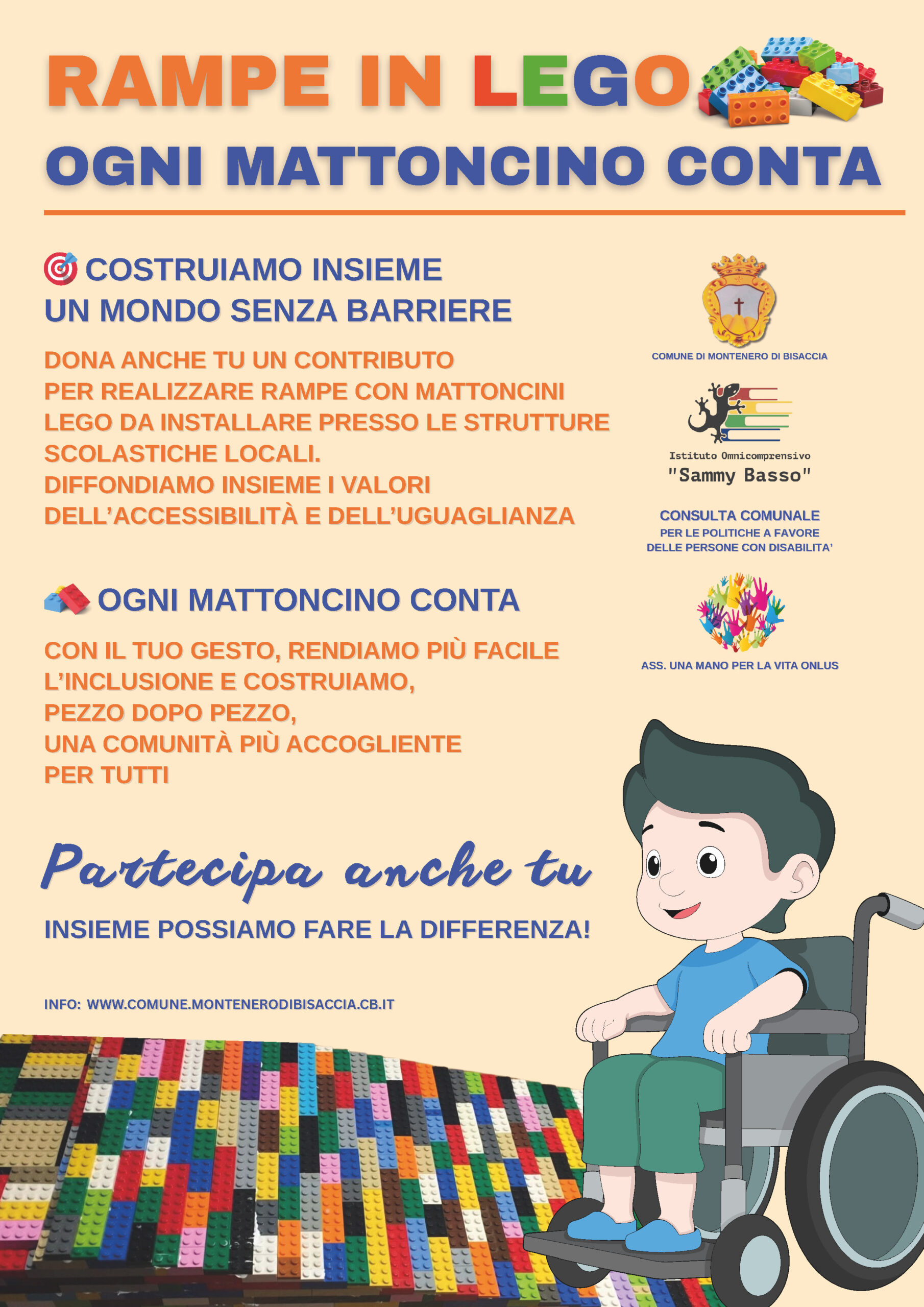 Promuovere l’inclusione, sensibilizzare sul tema delle barriere architettoniche e trasformare il gioco in un gesto di cittadinanza attiva: con questi obiettivi nasce “Rampe in Lego”, il nuovo progetto promosso dal Comune di Montenero di Bisaccia in collaborazione con l’Istituto Omnicomprensivo “Sammy Basso”, la Consulta comunale per le politiche a favore delle persone con disabilità e l’Associazione “Una mano per la vita” Onlus.