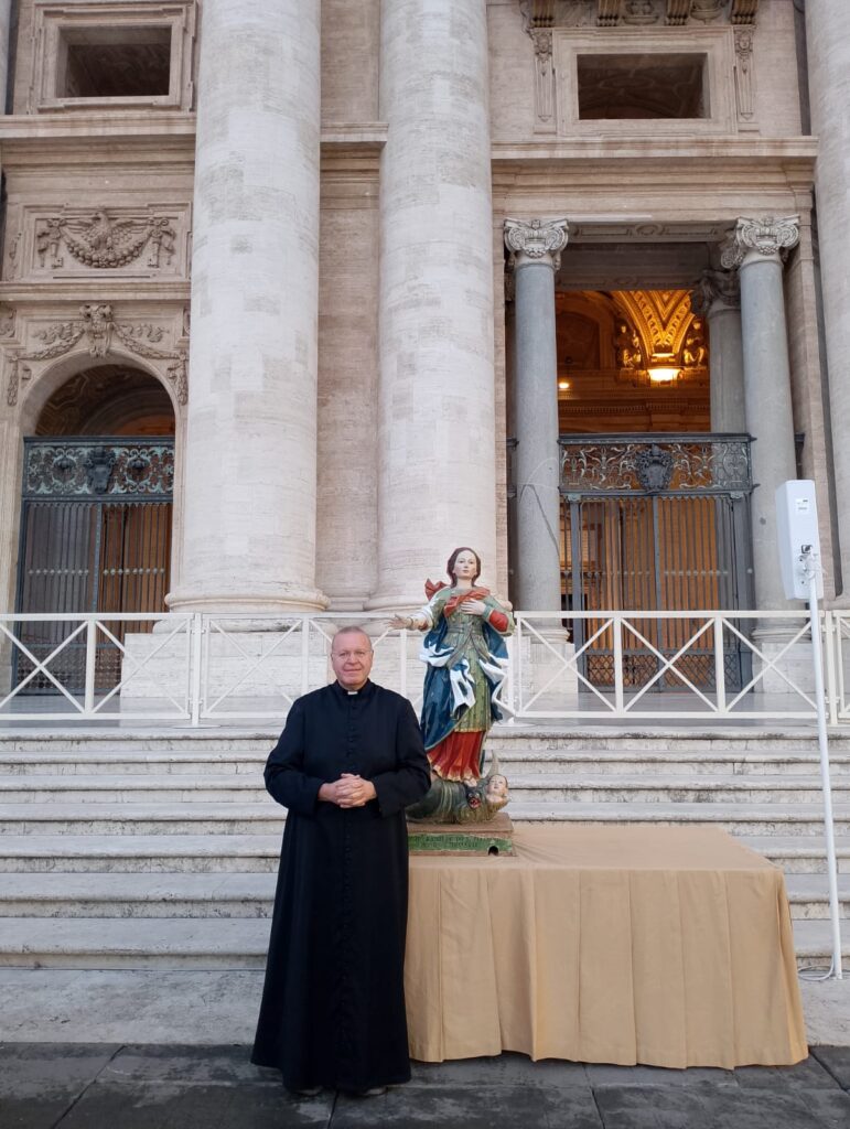URURI. Una giornata che resterà scolpita nel cuore della comunità di Ururi. Oggi, sabato 25 ottobre 2025, in occasione dell’udienza giubilare in piazza San Pietro, Papa Leone XIV ha benedetto la statua recentemente restaurata della Beata Maria Vergine Immacolata, custodita nella chiesa madre di Santa Maria delle Grazie. Un gesto che ha commosso profondamente oltre cento fedeli, partiti all’alba con due pullman e diverse auto private, guidati dal parroco don Michele Di Legge, anima e motore dell’iniziativa