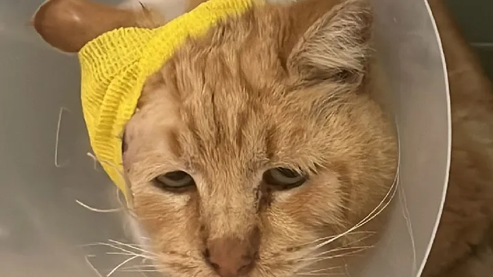 Il felino, chiamato Geppetto per la sua età, presentava una ferita grave sotto al collo, probabilmente un ascesso non curato che ha provocato un’infezione purulenta. Dopo la pulizia della lesione, Geppetto è stato ricoverato in clinica e necessita di pomate, antibiotici e cure specifiche per il ripristino della pelle.
