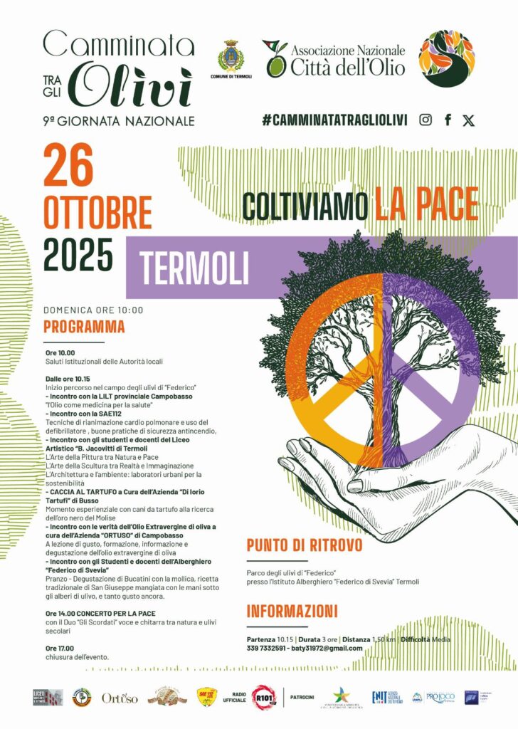 “Coltiviamo la Pace” è il titolo scelto per la nona Camminata Nazionale della “Camminata tra gli Olivi”.