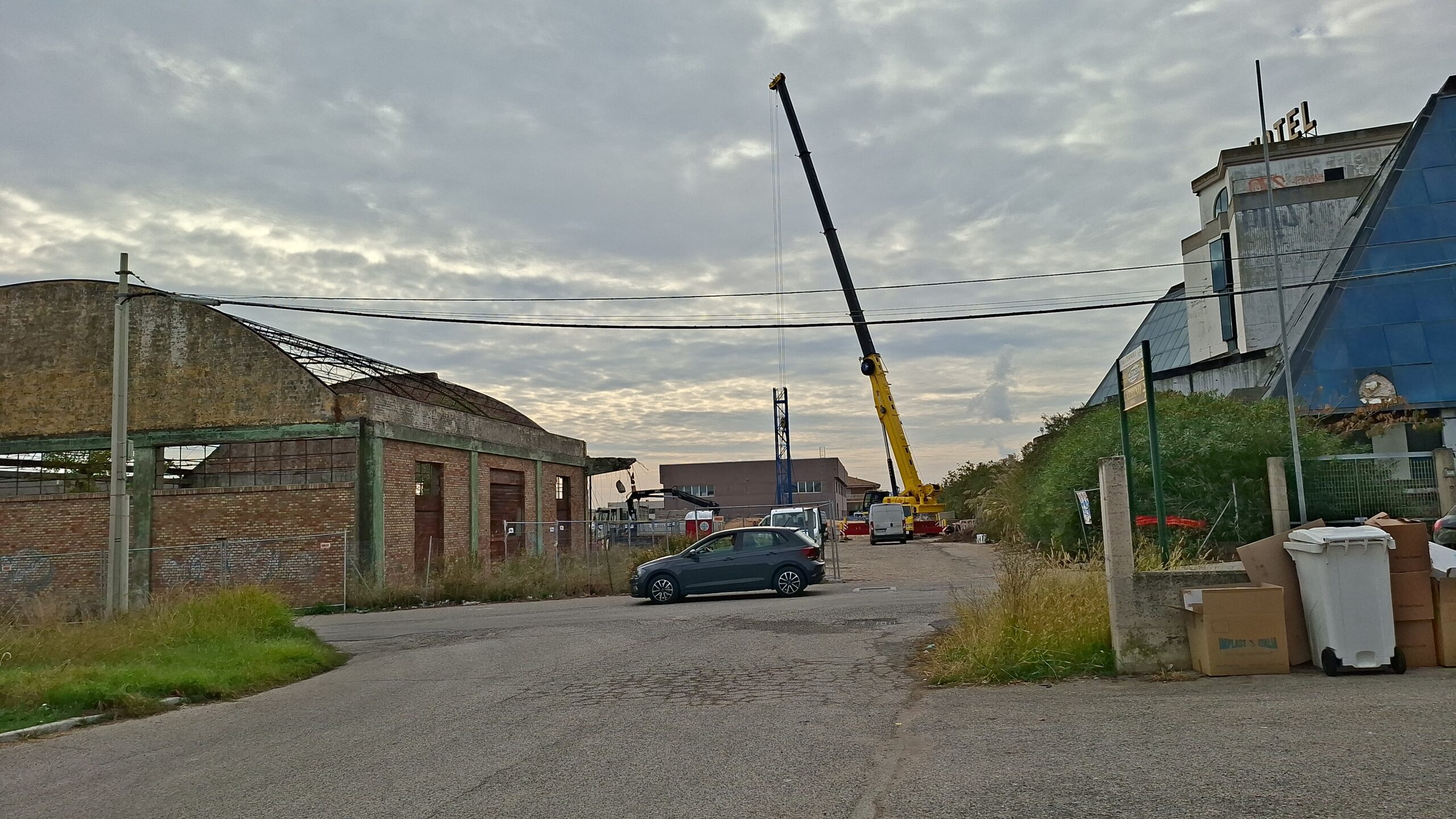TERMOLI. Una grossa autogru campeggiava questa mattina nella zona artigianale di via dei Roveri a Termoli, nei pressi dei capannoni di quella che un tempo veniva conosciuta come la Bentonite.