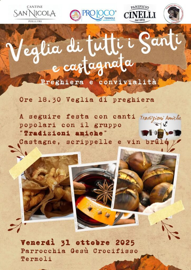L’evento avrà inizio alle 18:30 con una veglia di preghiera, seguita da momenti di festa accompagnati dai canti popolari del gruppo “Tradizioni Amiche”. Ai partecipanti saranno offerti castagne, scrippelle e vin brûlé, per vivere insieme una serata tra spiritualità e tradizione.