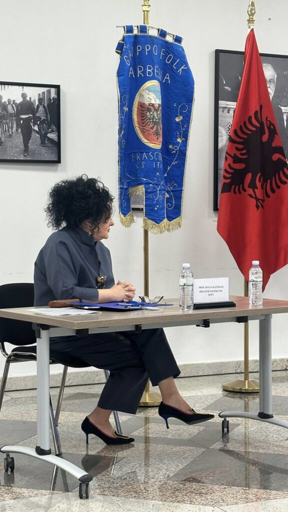 L’iniziativa si è svolta su invito della professoressa Diana Jup Kastrati, studiosa e direttrice del Centro di Studi Arbëreshë (Qendra e Studimeve Arbëreshe), docente presso l’Università di Tirana e figura di riferimento nel panorama culturale albanese. Figlia del celebre intellettuale Jup Kastrati, Diana porta avanti con rigore e sensibilità un’intensa attività di promozione del dialogo tra l’Albania e le comunità arbëreshe italiane.