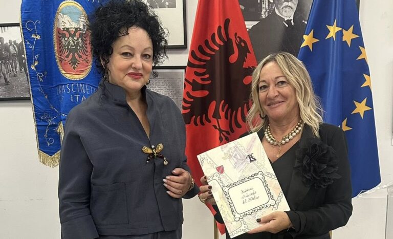 L’opera di Di Pardo, realizzata in collaborazione con la storica Fernanda Pugliese, fondatrice della rivista Kamastra, unisce linguaggio visivo e ricerca testuale in un progetto che ha già trovato spazio espositivo in Molise, su pannelli in plexiglas di grande formato. La consegna ufficiale a Tirana ha rappresentato un momento di forte emozione e riconoscimento, suggellando un legame culturale che continua a rafforzarsi attraverso la memoria, l’arte e la parola.