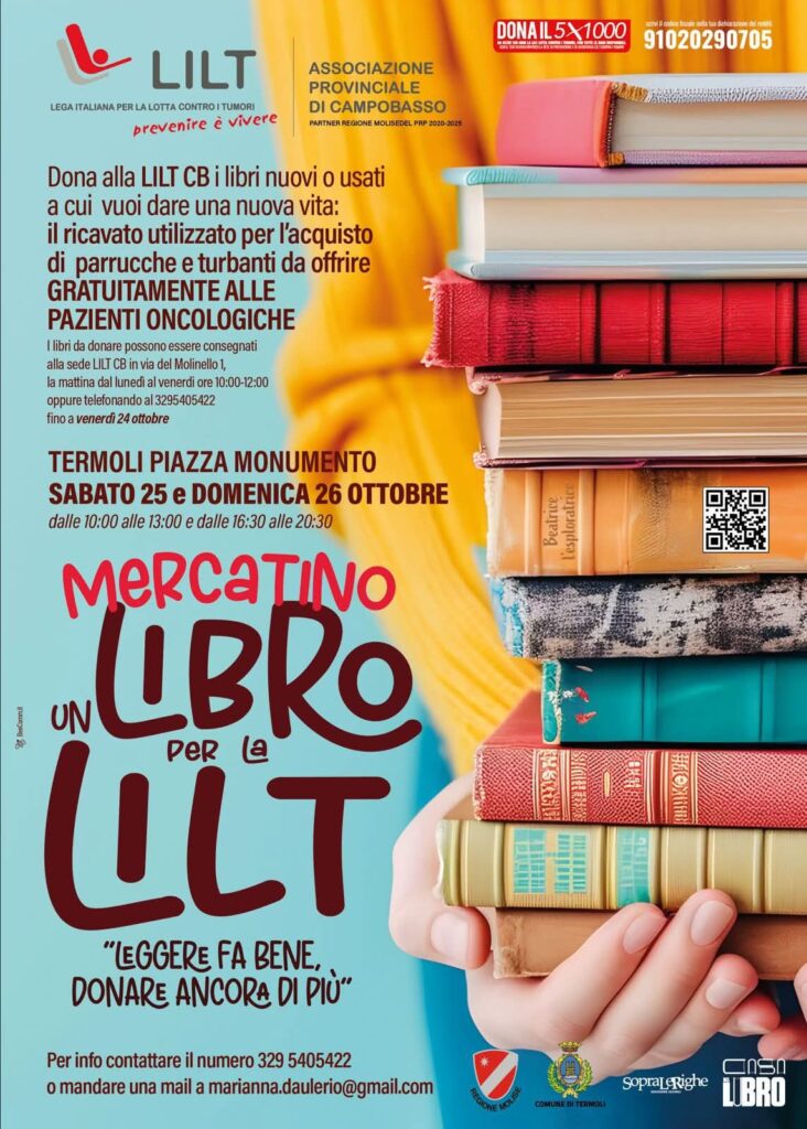 Le volontarie Lilt hanno catalogato centinaia di volumi donati nei giorni scorsi da cittadini di tutta la provincia, e li esporranno in piazza per promuovere la lettura, il riuso e la sostenibilità ambientale. I libri invenduti saranno ricollocati nella biblioteca dello Sportello Oncologico di Campobasso, presso la Cassetta del libro in via Firenze, oppure donati ad associazioni e biblioteche. Sabato pomeriggio sarà presente anche il Camper Ambulatorio Mobile per visite senologiche gratuite, senza prenotazione e fino a esaurimento disponibilità.