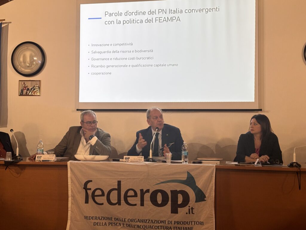 La sala gremita ha accolto l’ospite d’onore, il Sottosegretario del Ministero dell’Agricoltura, della Sovranità Alimentare e della Pesca produttiva e dell’Acquacoltura, On. Sen. Patrizio Giacomo La Pietra, che ha preso parte attiva ai lavori, animando un vivace confronto sui temi strategici del comparto ittico nazionale. A condurre l’incontro, il presidente della Federazione nazionale Basso Cannarsa, affiancato dal moderatore Luigino Pelà, vicepresidente vicario della FederOp.it e direttore della O.P. di Pila.