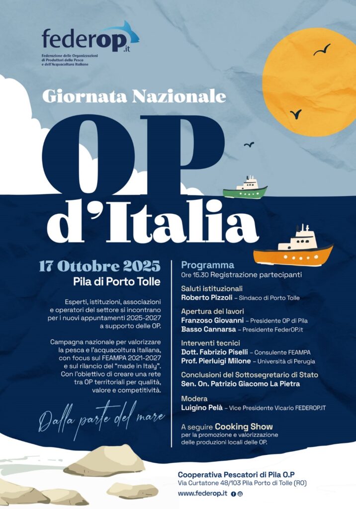 TERMOLI. Si è svolta venerdì 17 ottobre, presso la sede della Cooperativa Pescatori di Pila O.P. di Porto Tolle (RO), l’edizione 2025 della Giornata Nazionale delle Organizzazioni di Produttori della Pesca e dell’Acquacoltura. L’iniziativa, giunta alla sua quinta tappa, rientra nella campagna di informazione e qualificazione promossa dal Programma Triennale della Pesca ed Acquacoltura – Annualità 2025, con l’obiettivo di rafforzare il ruolo delle OP e dei loro armatori e acquacoltori.