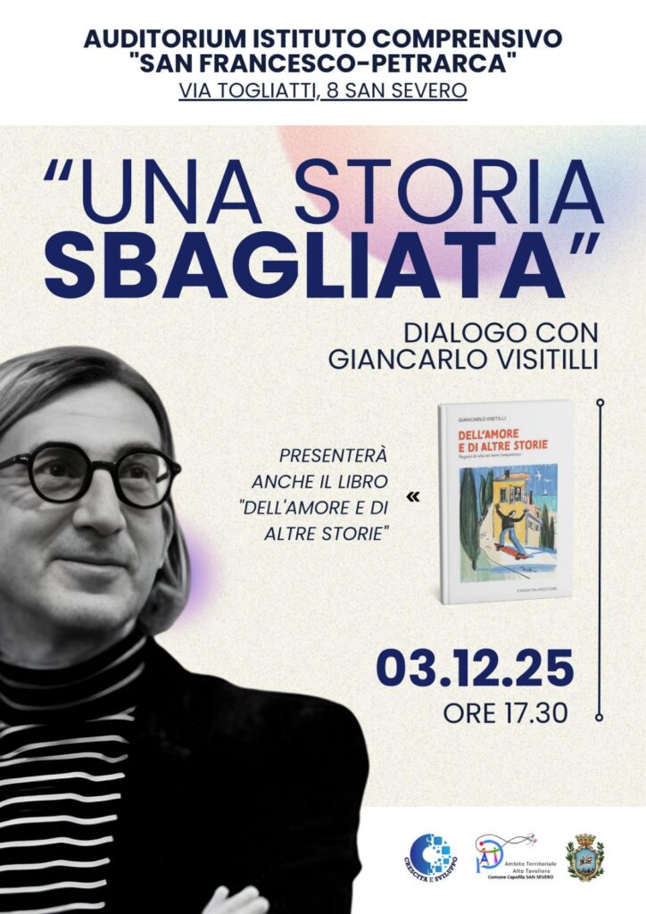 SAN SEVERO. Lo scrittore, docente e giornalista barese sarà ospite mercoledì 3 dicembre alle ore 17.30 presso l’Auditorium dell’Istituto Comprensivo “San Francesco-Petrarca” di San Severo.