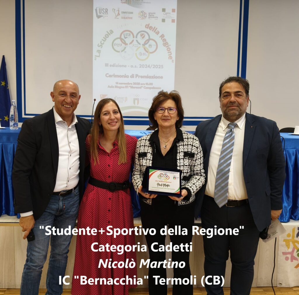 - Studente+Sportivo della Regione – Cat. Cadetti: Nicolò Martino, IC “Bernacchia” – Termoli