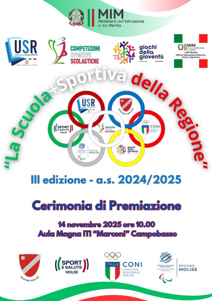 CAMPOBASSO. Valorizzare l’eccellenza nello sport a tutti i livelli e offrire agli studenti opportunità di crescita e partecipazione. Con questo obiettivo si è conclusa la terza edizione de “La Scuola+Sportiva della Regione”, il concorso promosso dall’Ufficio Scolastico Regionale per il Molise – Coordinamento Educazione Motoria, Fisica e Sportiva.