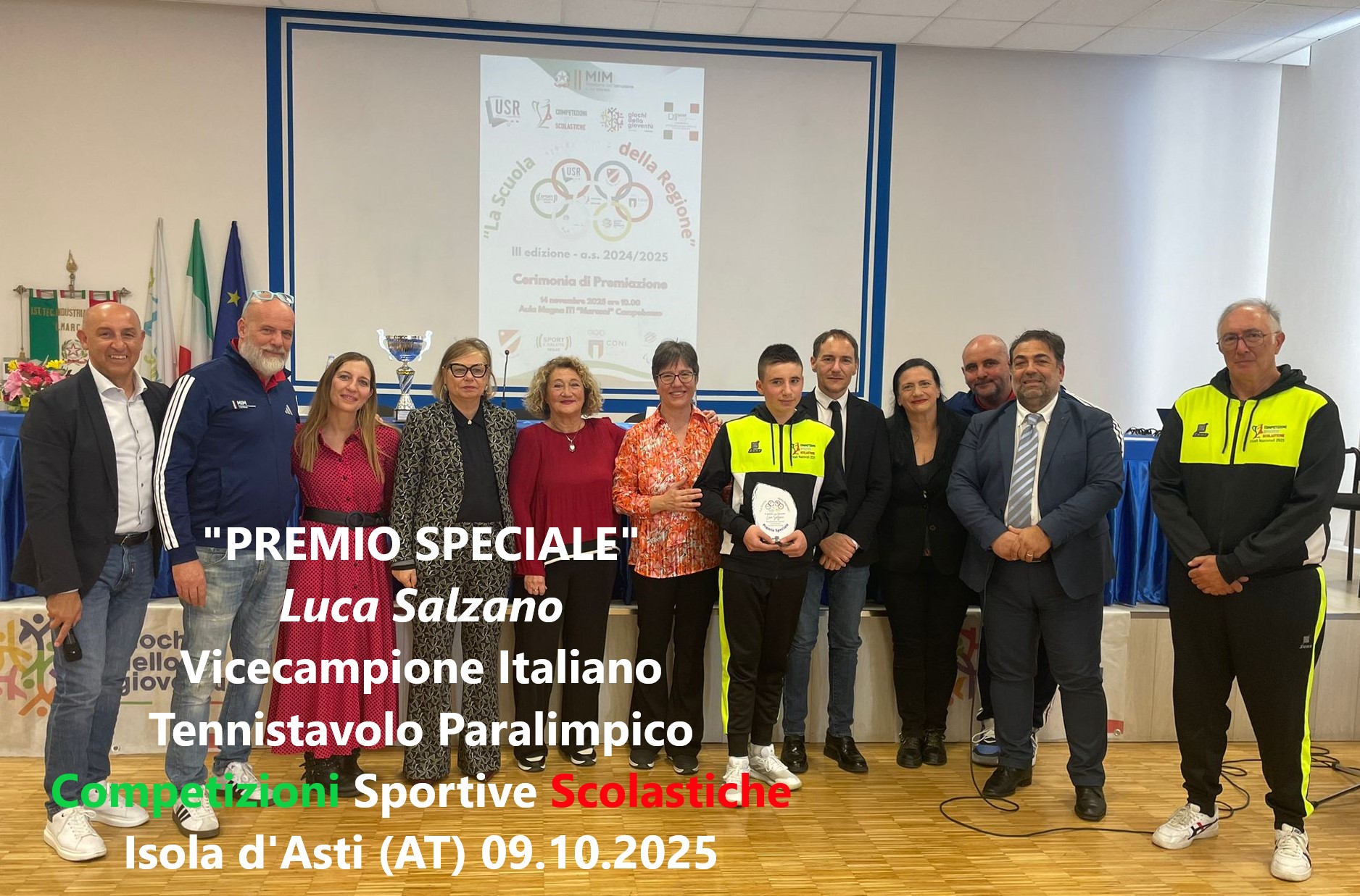 - Premio Speciale: Luca Salzano, IIS “Marconi-Pilla” – Campobasso, vicecampione italiano di Tennistavolo Paralimpico alle ultime Finali Nazionali delle Competizioni Sportive Scolastiche, svoltesi lo scorso ottobre a Isola d’Asti