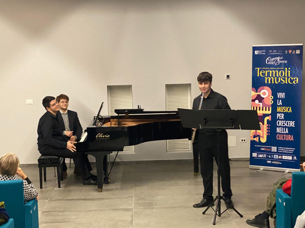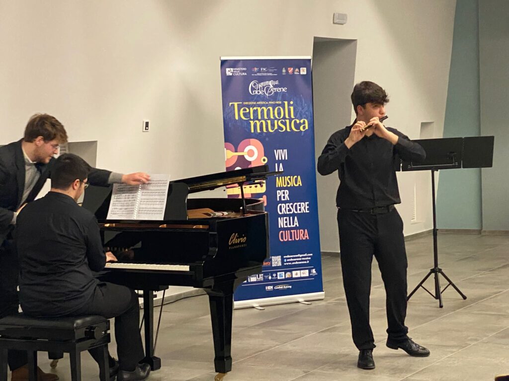 TERMOLI. Una fresca novità ha animato l’Auditorium di Termoli domenica 2 novembre, quando due giovani musicisti si sono esibiti nel concerto “Da Bach a Berio”. Christian Pio Nese al flauto e Francesco Ricci al pianoforte, nati rispettivamente nel 2007 e nel 2003, hanno incantato il pubblico di Termoli Musica con il loro talento, ottenendo un grande successo e confermandosi già interpreti affermati nel panorama musicale nazionale e internazionale.