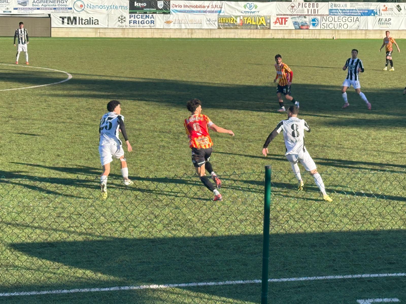 Partita certamente difficile quella affrontata dalla formazione di mister D’Adderio contro i bianconeri dell’Atletico Ascoli guidati da mister Seccandrini. Piccolo inciso: la gara, inizialmente prevista allo stadio “Del Duca”, è stata spostata per la concomitanza con l’impegno di Serie C della prima squadra ascolana, tornando così al vecchio campo dei bianconeri, il “Don Mauro Bartoloni” di Monticelli.