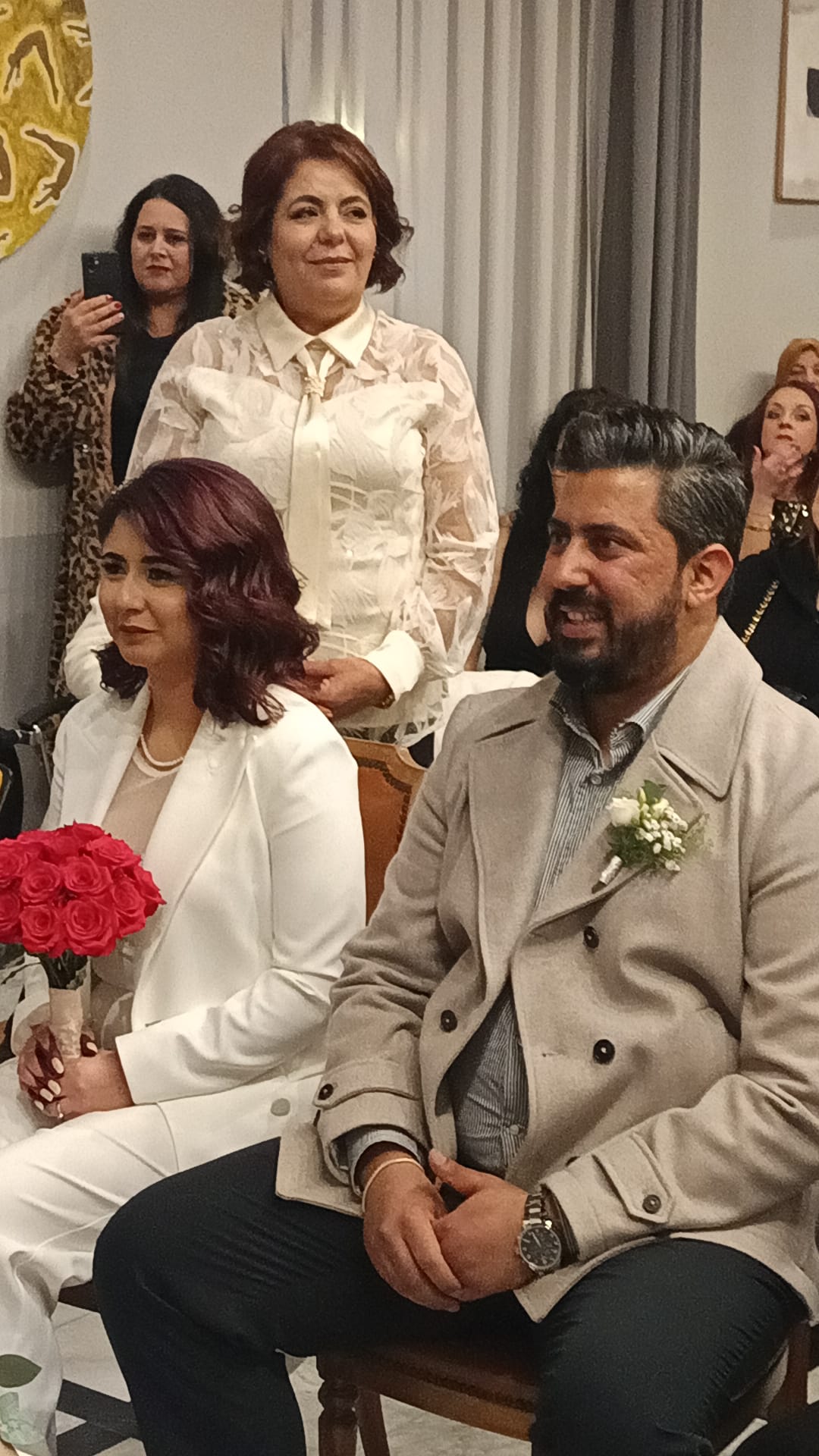Il rito ha avuto un inizio solenne e toccante con la recita di una preghiera in lingua araba, simbolo delle radici e della spiritualità della coppia. Un elemento fondamentale che ha caratterizzato l’intera celebrazione è stata la presenza di un’interprete la Signora Najah Banour il cui ruolo si è rivelato prezioso e indispensabile: traducendo ogni parola del Sindaco in lingua araba e nei dialetti d’origine, ha permesso ai parenti dello sposo collegati da lontano di seguire ogni istante del “Sì”. È stato un gesto di profondo rispetto, che ha annullato le distanze geografiche e linguistiche, facendo sentire tutti parte di un unico, grande abbraccio.
