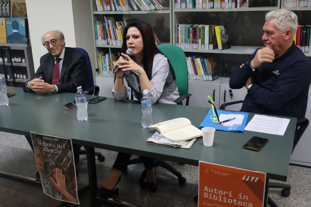 TERMOLI. La Biblioteca comunale “G. Perrotta” si riempie per il quarto appuntamento della rassegna “Autori in Biblioteca”, un ciclo che sta diventando un presidio culturale e umano della città. L’atmosfera è quella delle occasioni che contano: sedie occupate, pubblico attento, un silenzio che non pesa ma prepara. Al centro della scena, Il gioco del silenzio, il libro di Fiorenza Leone, un’opera che non racconta una storia: la attraversa, la incide, la espone.