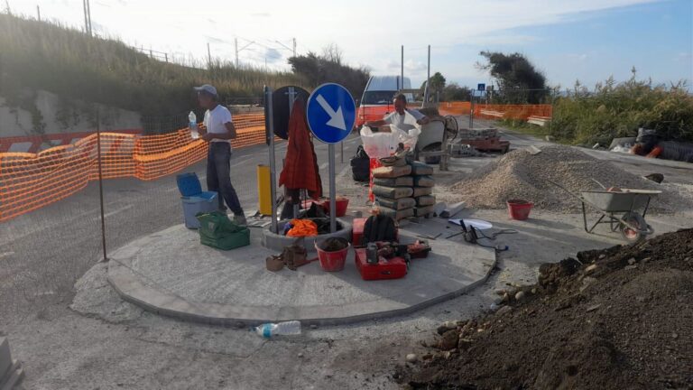 Mar 21 Ott 2025 Photogallery Lungomare Nord, nuova mini rotonda e pali solari: proseguono i lavori sulla ciclovia Adriatica